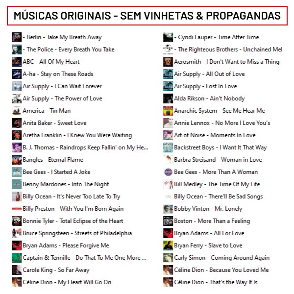Sim! Nossa seleção é das mais ouvidas/pedidas, apenas sucessos de verdade! Lembrando que as músicas estão em 320KBPS (Alta qualidade), todas no mesmo volume.